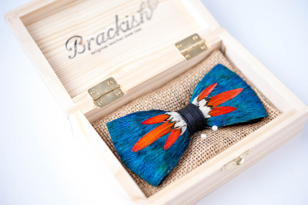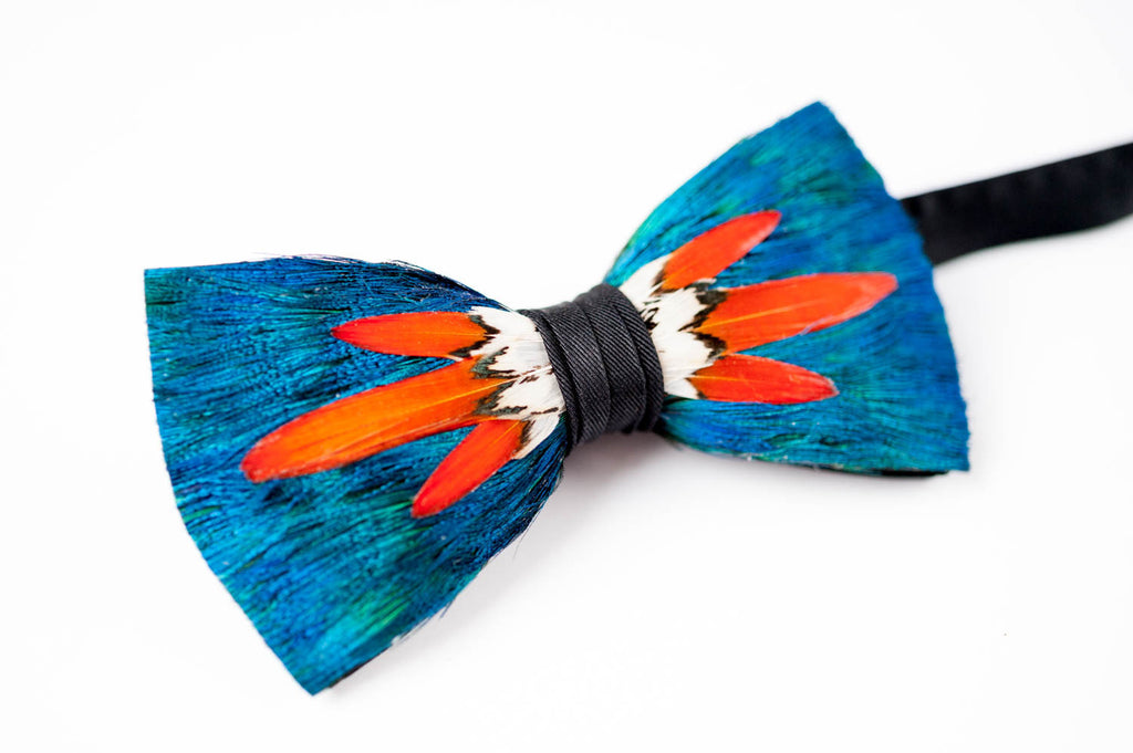 For the man that's seeking a Brackish bow with a tad more dash than normal, let us suggest Bloom. It's made the same way as the other Brackish designs we're famous for (handcrafted, one feather at a time), but enlivened with a distinguished pattern consisting of over 80 natural peacock and pheasant feathers that will definitely garner some well deserved attention.