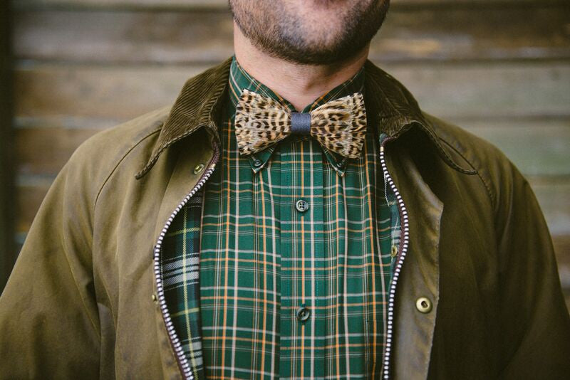 Quail for days. We love our quail at Brackish and you should too. Our artisans use hand selected quail feathers for a wild pattern that pairs well with a grey twill wrap, which serves as a calming influence and adds versatility to the design. Make no mistake: this new addition will get you noticed.